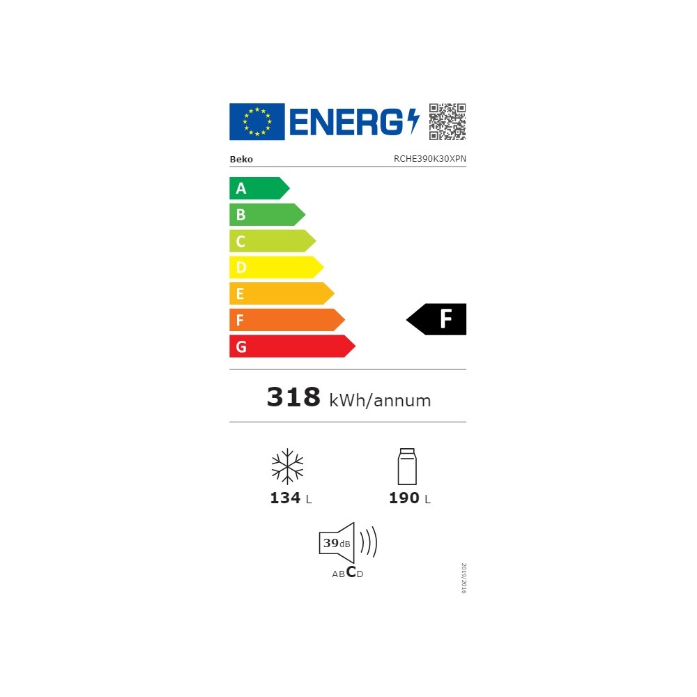 Beko RCHE390K30XPN samostojeći kombinirani hladnjak