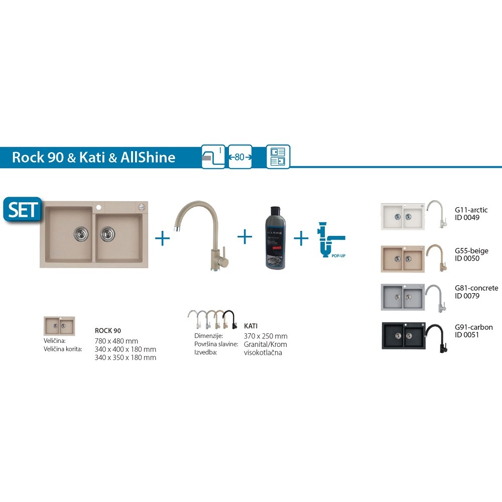SET Alveus Rock 90 sudoper + Kati slavina + AllShine