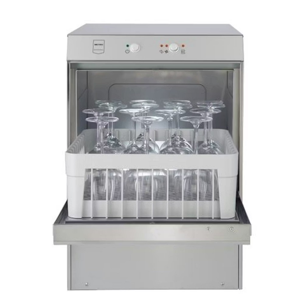 Perilica za čaše s kućištem i vratima od nehrđajućeg čelika sa sustavom dvostrukog filtriranja. Sadrži 1 košaru (40x40 cm) i 1 držač za pribor. Ciklus pranja traje 120 s (30 košara/h). Maksimalna visina čaše: 30 cm