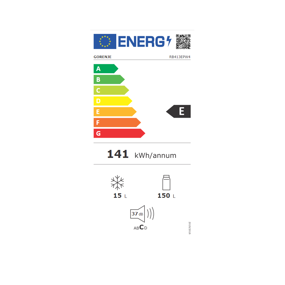 E, Dizajn/Boja: Bijela Otvaranje vrata Lijevo/desno promjenjivo otvaranje vrata Materijal vrata Metalna vrata Obujam rashladnog dijela: 150 l Obujam zamrzivačkog dijela: 15 l Oprema hladnjaka LED osvjetljenje, Broj staklenih polica: 4, Posuda za jaja: 1 Dimenzije aparata (VxŠxD) 126,5 × 51,5 × 51,4 cm