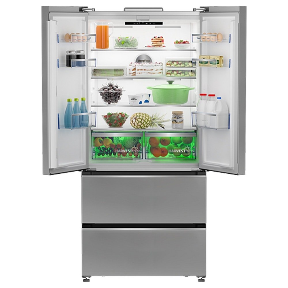 Beko BEKO, B3RGNE544HXB, 4‑vratni i veći hladnjak, Ukupni volumen Bruto/Neto (l): 543 / 353+157; Energetska klasa: E; AeroFlow™ / Dual Cooling; Neo Frost; Harvest Fresh; Produžena garancija na ProSmart Inverter kompresor; Elektroničko upravljanje; Holiday Mode; Quick Freeze; Posuda za led s poklopcem (x1) - sa kutijom za pohranu; Standardna staklena polica; VxŠxD: 182.3x83.2x70.0 cm