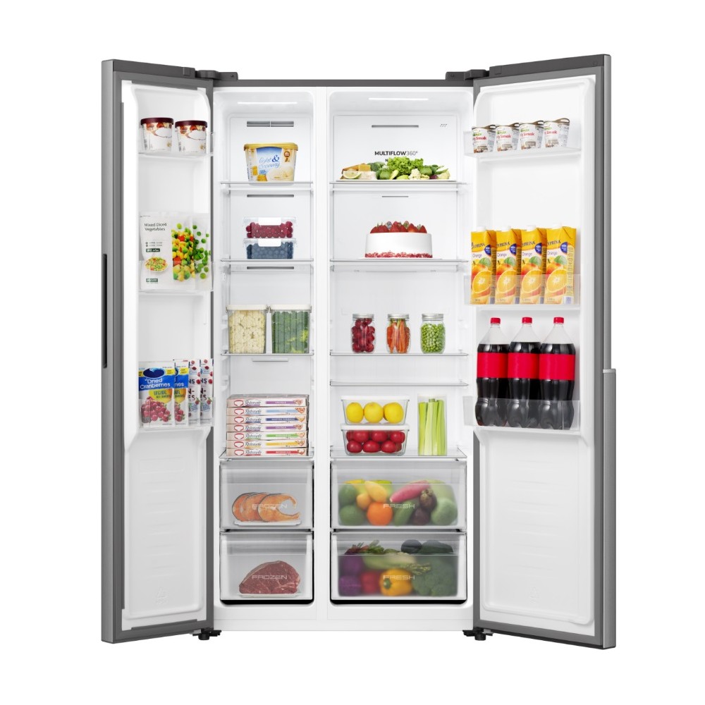 Side-by-side, A+, E, Samostojeći, (ŠxVxD); 91,1 × 178,6 × 61,5 cm, Inverterski kompresor, Ukupni volumen; 531 l, Volumen prostora hladnjaka; 345 l, Volumen prostora zamrzivača; 186 l, Kapacitet zamrzavanja; 10 kg; Vrijeme čuvanja u slučaju nestanka el.energije; 6 h, SensoTech, LED zaslon, NoFrost Plus, MultiFlow, FastFreeze, SuperCool, EcoMode, Neto težina proizvoda; 80 kg, Bruto težina proizvoda; 90 kg, 39 dB(A)re1pW"