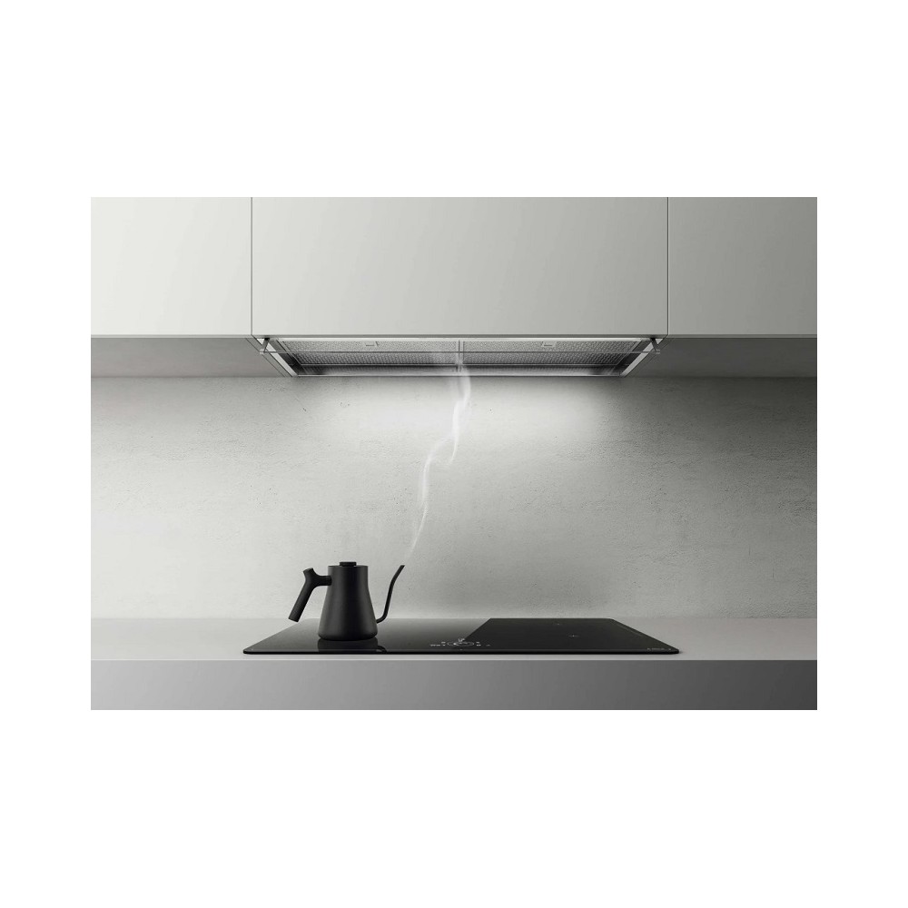 Potpuna integracija, niska potrošnja energije, tihi rad i jednostavno čišćenje, ova napa ima prednji štit koji se otvara do 45° za vrhunske performanse. Funkcije i senzori se automatski uključuju dok kuhate, prilagođavajući snagu ventilacije prema detektiranoj razini isparenja i para te se isključuju kada kvaliteta zraka dosegne optimalnu razinu.