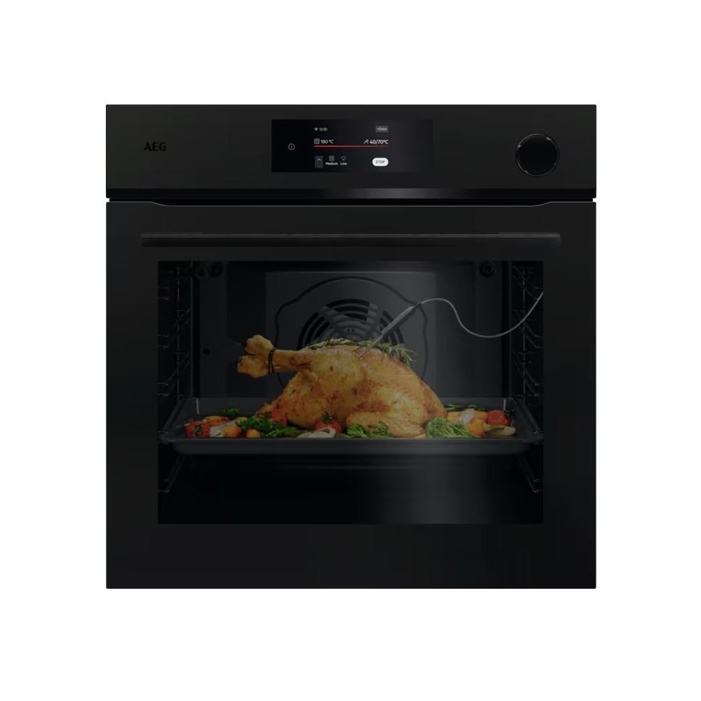 Ugradbena Parna pirolitička pećnica 7000 MealAssist sa SteamCrisp i ventilatorom, Wi Fi povezivost i kontrola putem aplikacije, , 72L, 1 Halogeno svijetlo straga sa strane 65W, , Energetska klasa A+; , Boja: Mat Crno staklo, , Ravnomjerno grijanje Pećnice vrućim zrakom; Kružni grijač 2.400W; , SUPEX LCD interaktivni ekran "Progress bar" (HR, SLO, SRB i ALB jezik + 30), ekran na dodir, 5 dodirnih polja, Wi-Fi, , Upravljanje i odabir postavki putem 4,3" TFT SUPEX ekrana u boji na dodir, , 21 Funkcija: Gornje grijanje; Doljnje grijanje; Vrući zrak, Gornje / Doljnje grijanje; Vrući zrak + Gornji grijač, Vrući zrak + Gornje / Doljnje grijanje; Ventilator sa uštedom topline, Podgrijavanje, Roštilj; Dizanje tijesta (ručno); Osviježenje hrane (ručno); Odmrzavanje; Krčkanje, Složenci, Pečenje mesa, Sporo kuhanje; Očuvanje; Grijanje tanjura; Čuvaj toplim; Sušenje; Vrući zrak + Doljnje grijanje; ProSteam: Niska razina pare; , CookSmart Touch; AUTO programi: Assist 74 programa (težinski sa prijedlogom temperature i vremena / senzor hrane), , Sonda za hranu: Auto isključivanje, temperatura, procjena vremena, podešavanjem kraja, , Sigurna vrata sa 3 izolacijska stakla, SoftClosing, Balansirana i odvojiva; Elektronsko i Piro zaključavanje, , OPREMA: Bočne vodilice EasyEntry, Teleskopske vodilice + 1 plitica za kolače + 1 plitica za pečenje + 1 kromirana rešetka, , Pečenje u 3 nivoa / 5 pozicija, , Brzo zagrijavanje, Otvaranje vrata sa paljenjem svijetla, Ventilator Stop, SIGURNOST: Auro isključivanje, Child Lock, Elektronsko i Piro zaključavanje vrata, , Sat sa programibilnim timerom 5 podešenja i isključivanjem, , SteamCrisp - SteamCrisp - Parna funkcija 25% pare, Zvučna signalizacija, početka, kraja, upozorenja, minutni podsjetnik; Prikaz vremena: trenutno, trajanje, preostalo, , Prikaz temperature: na displayu, indikator preostale, , Pirolitičko čišćenje 3 ciklusa, , Priključni kabel 1,5m Schuko priključak, Maksimalna priključna snaga: 3.380W, 1x 16A, , 30°C - 300°C, Hlađenje dvostruki Radial; , Dimenzije u cm: 59,4 V x 59,5 Š x 56,7 D