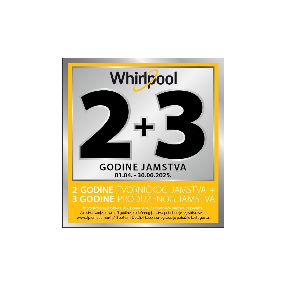 Kupnjom uređaja iz Whirlpool asortimana uz 2 godine tvorničkog jamstva kupac ostvaruje pravo na 3 godine produženog jamstva.