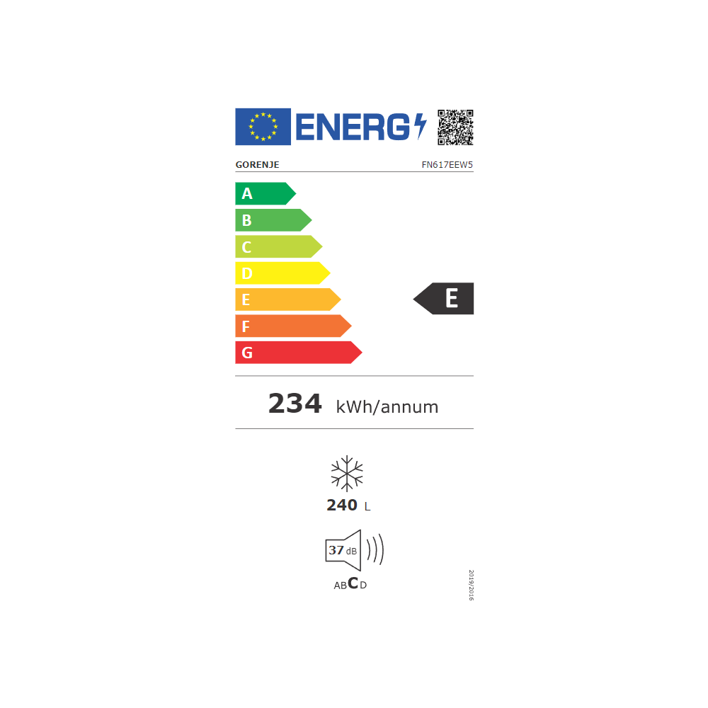 E, Dizajn/Boja: Bijela, Otvaranje vrata Lijevo/desno promjenjivo otvaranje vrata, Obujam zamrzivačkog dijela: 240 l, Oprema zamrzivača; MultiFlow 360, FastFreeze, pet ladica, Vrijeme čuvanja u slučaju nestanka el.energije 10 h, Kapacitet zamrzavanja 11kg/24h, Dimenzije aparata (ŠxVxD) 69,5 × 172 × 59 cm